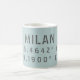 Stilvolle Kaffee-Tasse mit Mailand-Italien Breiten- und Längenkarte Koordinaten im modernen urbanen Schriftart