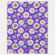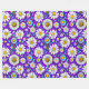 Ein farbenfrohes, nahtloses Muster mit Gängen mit gelben Mittelpunkten, blauen Blätter und einem lebendigen lila Hintergrund. Perfekt für Frühlingsthemen, Textilien und fröhliches Digital- oder Druckwerk.