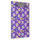 Ein farbenfrohes, nahtloses Muster mit Gängen mit gelben Mittelpunkten, blauen Blätter und einem lebendigen lila Hintergrund. Perfekt für Frühlingsthemen, Textilien und fröhliches Digital- oder Druckwerk.