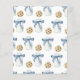 Ein kleiner Keks ist unterwegs! Party mit Duschkabine. Aquarellkekse mit Schokolade und Flaschenmilch mit blauem Bogen.