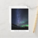 Ein Landschaftsfoto mit der Milchstraße und grünen Nordlichter (Aurora borealis) im arktischen Nachthimmel über Nordnorwegen, Skandinavien.