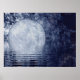 Ein kreatives Fraktal, das wie ein Mond aussieht, der über einen See hinaufsteigt, mit der milden Art im Hintergrund.