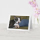 Miley der Welpe Bostons Terrier rollt ihre Augen