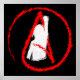 Ein Poster eines weißen, skizzenhaften Mannes oder einer weißen Frau mit der Faust in der Luft mit einem roten Krümelknopf A für Atheismus auf schwarzem Hintergrund.
