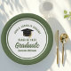 Diese weiße und aristengrüne, maßgeschneiderte Papiertafel der Graduierungsparty zeigt klassische Typografie Ihrer Militärakademie, Oberschule oder Uni für die Klasse von 2025. Passen Sie mit Ihrem geschlossen Jahr unter der schicken weißen handgeschriebenen Drehbuch und schwarzen Graduiertenkappe für große personalisierte Graduiertendekoration.