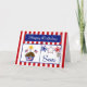 Diese Patriotische Geburtstagskarte wird Ihren militärischen Sohn zum Lächeln bringen. Es ist mit einem rot-weiß gestreiften Hintergrund, Schokoladenkuchen mit Sternen, American Flags, einem Fahnenherz und einer Kerze, roten, weißen und blauen Sternen, einem Hundeschild mit der Prägung "USA" und einem blauen Banner mit dem Text "Happy Birthday" in Weiß ausgestattet. ©2015 Hunde-Tags & Kampfstiefel Militärkarten von Sherry Harris
