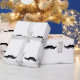 Eine lustige, glänzende Illustration eines kalten Glases Milch neben einem daraus resultierenden Milchschleifer.