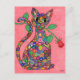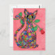 Diese schöne Katze sitzt vor einem sanften rosa Hintergrund und zeigt ihre aufwändigen, ungewöhnlichen Markierungen, ähnlich denen, die man auf Millefiori Perlen und Glas findet. In ihrem Mund hält sie eine Single-rote Rose, in diesem einzigartigen, aufregenden und hochdetaillierten Design.