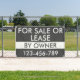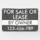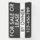 Einfach dunkelgrau und weiß zum Verkauf oder zur Vermietung durch den Eigentümer Outdoor-Banner, die mit Ihrem persönlichen Text oder Informationen angepasst werden können. Egal, ob Sie gewollt haben, ein Haus, ein Motorrad, ein Auto, ein Boot oder ein Flugzeug zu verkaufen. Dieses Werbezeichen ist für potenzielle Kunden leicht erkennbar.