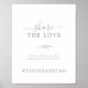 Dieses minimale Blatt blau Share die Liebe Hochzeit Hashtag Zeichen ist perfekt für eine elegante Hochzeit. Die Silhouette ist schlicht und grün in hellblau mit klassischem minimalistischem Stil. Personalisieren Sie das Zeichen mit Ihrem Hochzeitshashtag.