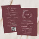 Dieses minimale Blatt Bordeaux Wochenende Veranstaltung Hochzeit Einladung ist perfekt für eine boho Hochzeit. Das böhmische Design besticht durch eine schlichte grüne Silhouette in dunkelroter Weinfarbe mit klassisch minimalistischem Boho-Stil. Rett Papier, indem du den Wochenendplan der Veranstaltungen auf der Rückseite der Hochzeitseinladung einfügst, anstatt auf einer separaten Eintrittskarte. Fügen Sie Ihren Gästen einen QR-Code zum Karo Ihrer Hochzeitswebsite oder zum UAWG einfach online ein.