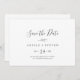 Diese minimale, dunkelgraue, waagerechte Save the Date Karte eignet sich perfekt für eine elegante Hochzeit. Die Silhouette im Grünen ist schlicht und in Holzkohlegrau gehalten.