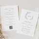 Dieses minimale Blatt staubblauen Wochenende Veranstaltung Hochzeitseinladung ist perfekt für eine Hochzeit. Die Silhouette ist schlicht und grün in hellblau mit klassischem minimalistischem Stil. Rett Papier, indem du den Wochenendplan der Veranstaltungen auf der Rückseite der Hochzeitseinladung einfügst, anstatt auf einer separaten Eintrittskarte. Fügen Sie Ihren Gästen einen QR-Code zum Karo Ihrer Hochzeitswebsite oder zum UAWG einfach online ein.