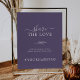 Dieses minimale Blatt Pflaume lila Share die Liebe Hochzeit Hashtag Poster-Zeichen ist perfekt für eine elegante Hochzeit. Die schlichte Silhouette der grünen Blätter in dunkelblauer Veilchenform, die mit minimalistischem Boho-Stil lila ist. Personalisieren Sie das Zeichen mit Ihrem Hochzeitshashtag.