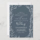 Diese minimale Blatt blau Hochzeitskarte ist perfekt für eine elegante Hochzeit. Die Silhouette ist schlicht und grün in dunkelgraublau mit klassischem minimalistischem Stil.