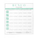 Entferne so viele Punktkarten wie nötig von diesem Notizblock und schlüpfe dein Bunco-Spiel mit diesen, bereit zu gehen und leicht zu benutzen, Abreißen von Punkteblättern und jeder Spieler kann leicht behalten, die Spur seiner Gewinne und Verluste, sowie das Sammeln von buncos und kleinen buncos für bis zu fünf Runden. Weiche, minzblaue grüne Akzente tragen zum Ambiente bei und helfen, Ihrem Thema gerecht zu werden.