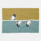 Apportez un style moderne à votre cuisine avec cette serviette de cuisine au design minimaliste d'oiseaux. L'élégante composition combine des silhouettes d'oiseaux simples, des lignes épurées et des blocs de couleurs audacieux dans des tons turquoises et moutardes, créant une esthétique d'inspiration scandinave.