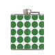 Cute et tendance Mini Flask Pois. Ce design présente des pois en petits cercles en vert et blanc. Un texte peut être ajouté à cette conception pour lui donner une touche personnelle.