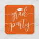 Ces invitations à la remise des diplômes sont de petite taille mais grandes sur la simplicité stylisée. Annoncez la réussite du diplômé et la famille et les amis invitations à célébrer avec les élégantes mini-remise des diplômes de la fête orange et blanc de l'enceinte. La petite taille du carte de visite carré les rend faciles à insérer avec les annonces de remise de diplômes ou à distribuer à la famille et aux amis (ils ne sont pas fournis avec des enveloppes.) Vendu en paquets à un prix abordable, ces inserts offrent une option chic pour rester dans un budget raisonnable. Le libellé de ce modèle est simple à personnaliser, et les couleurs peuvent être customisées à l'aide de l'outil de design Zazzle. Le design moderne orange et blanc présente une calligraphie manuscrite avec un casquette en carton de mortier et une élégante typographie classique. Cette carte d'invitation à l'obtention d'un diplôme est une façon unique d'annoncer une fête spéciale. Félicitations au diplômé !