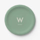 Trendy Personal Party Paper Teller mit Minze grünem Hintergrund, großen zentrierten Monogramm und dazugehörigem Namen. Saubere, einfache minimalistische Typografie. Vollständig personalisierbar.