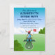 Les invités d'invitation à un golf miniature party avec cette invitation d'amusement comportant le mini moulin à vent polyvalent de golf. La boule est installée attendant le prochain golfeur pour piquer. Ajoutez l'âge de l'enfant d'anniversaire sur le drapeau rouge. L'inverse montre la boule se laissant tomber dans le trou après avoir été tapé par le club de golf. Ajoutez n'importe quelle information supplémentaire sur l'inverse ou supprimez-la pour laisser le blanc arrière. Disponible avec les produits assortis.