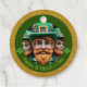 Miniatur Leprechaun in 3D + "Happy St Patrick's Day" in einen grünen Kreis + Vintag St Patrick's Day Postkarte als Hintergrund mit "Danke!" hinten. Design auf dem Round-Gvor-Tag-Tag.