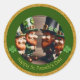 Miniatur Leprechaun in 3D + "Happy St Patrick's Day" in einen grünen Kreis. Gestaltung auf Rundaufkleber.