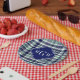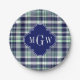 Mini Navy White Preppy Madras Quatrefolienmonogram Pappteller
