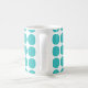 Mignonne et tendance Mini Pois Mug. Ce design est composé de pois en petits cercles en bleu turquoise et blanc. Un texte peut être ajouté à cette conception pour lui donner une touche personnelle.