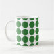 Mignonne et tendance Mini Pois Mug. Ce design présente des pois en petits cercles en vert et blanc. Un texte peut être ajouté à cette conception pour lui donner une touche personnelle.