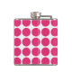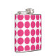 Niedliche und trendige Mini Polka Dots Flask. Dieses Design zeichnet sich durch kleine Kreispolka Punkte in Rosa und Weiß aus. Text kann diesem Design hinzugefügt werden, um ihm eine persönliche Touch zu geben.