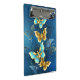 Composition de flying, jewelry, or et dark butterflies on textured jewelry background. Golden butterfly.