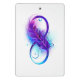 Infinity symbole with a beautiful feather painted in purple and blue bright colors on white background