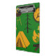 Un mignon mini porte - bloc pour mettre tous vos plans de camping dans. Il a de mignons dessins de camping comme un grill, tente, boussole, feu de camp et même sapin.