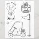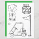 Das hübsche Farbbild der Seite ist mit einem bezaubernden Gopher neben einer Geburtstagstorte, einem Golfwagen, einem Golf Button und einem Ball ausgestattet. Dieses koordinierende Design passt perfekt zum einladenden Set.