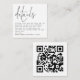 MINI QR Code Skript Schwarz-weiße Hochzeitsdetails. Eine charmante Miniatur Größe 2.5" Quadrat, um mit Ihren Einladungen mit Ihrem Qr-Code auf Ihrer Hochzeitswebsite auf der Rückseite. Der Header ist groß und in einem informellen Set-Skript, mit den Details darunter und viel weißem Raum auf einer quadratischen Form für einen zeitgenössischen Stil. Personalisieren Sie die Erholung des Textes einfach. Ihr QR-Code wird automatisch generiert, um den Beispielcode im Design zu aktualisieren, wenn Sie einfach die Beispiel-URL in der Vorlage mit Ihrer eigenen Hochzeitswebsite-URL ändern. Sie können Text- und Hintergrundfarben in eine beliebige Farbe ändern, indem Sie weitere Bearbeitungen vornehmen.