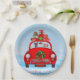 Miniatur Pinscher Hund in Auto mit dem Weihnachtsm Pappteller