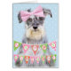 Das ist eine wunderschöne Geburtstagskarte mit einem farbigen fotografischen Bild eines superniedlichen Miniaturschnauzer-Hundes, der einen blassrosa Polka-Dotbogen im Set mit einem blassblauen Polka-Dot-Hintergrund trägt. Der Text GLÜCKLICH BIRTHDAY ist auf farbenfrohen rosa, grünen und roten gemusterten Bundings im unteren Teil der Karte geschrieben. Das wäre eine tolle Karte für jeden Schnauzer oder Hundefreund. Mein Dank gilt DQT für die wunderbare Bogen-Krawatte und den hervorragenden Service. Natalie Kinnear Fotografy Fine Art Fotografic Artist Print and Leinwand Wall Art for Wohngestaltung and Interior Design www.nataliekinnearphotography.co.uk www.facebook.com/natkphoto