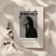 Minimal Black White Script Photo Graduation Party Invitation. A modern and elegant, black and white graduation party invitation, designed with script lettering, and a customizable photo. Personalize with your info on the front and back of the card.