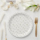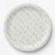 A delicate seamless floral pattern paper plate featuring elegant line art illustrations of wildflowers, leafy stems, and tiny berry branches on a clean white background. This minimalist botanical design uses soft neutral tones and fine outlines to create a calm, modern aesthetic.