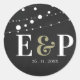Minimal Chalkboard String Lights Monogram Wedding Runder Aufkleber