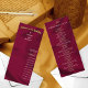 Hochzeitskarte - Burgundy Sophistication with Golden Flair & Timeline That Slaps Deine Hochzeitsfeier ist nicht nur ein Augenblick - es ist eine ganze Stimmung, und diese Burgundy Wedding Program Card ist hier, um die Gäste mit Sass, Klasse und einem vergoldeten Wink durch sie zu führen. In seidenseidenseidenmatinischer Textur mit bordeauxroten Untertönen und strahlenden goldenen Akzenten verwandelt es Ihr Event-Lineup in eine scrollwürdige, würdige Highlight-Rolle. Stellen Sie es sich als Ihren stilvollen Meister der Zeremonien vor - ohne das Mikrofon. Von "Here Comes the Bride" bis "Time to Toast & Twirl", legt diese Karte jeden Schritt Ihres Festes mit Klarheit und Charme dar. Egal, ob Sie es minimalistisch und klassisch behalten haben oder spielerisch mit Noten wie "Empfang zu folgen (ja, mit Snacks)" streuen, es passt sich perfekt an Ihre Stimmung an. Geben Sie Ihre Namen, Datum, Zeremonie Timeline, Hochzeitsfeier-Schreie, und sogar diese besonderen Widmung oder sonderbare Seitennotizen, die Ihren Tag einzigartig machen Sie. Außerdem koordiniert es mühelos mit Ihrer Einladungssuite und der flachen Ästhetik. Leicht, umschlagfertig und sowohl funktional als auch Foto-tauglich gestaltet, ist dieses Programm nicht nur informativ, sondern fabelhaft.