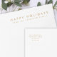Einfache, stilvolle, trendige Umhüllung um das Urlaubsadressen-Label mit moderner minimaler Typografie Zitat "Happy Holidays" in Gold auf einem sauberen, weißen Hintergrund. Name, Adresse und Gruß lassen sich einfach für eine persönliche Touch anpassen. Ein elegantes, minimalistisches und zeitgenössisches Weihnachtsdesign, das sich von der Masse in dieser Urlaubszeit abhebt! #christmas #gold #address