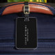Ein einfaches schwarzes Etikett zur Identifizierung Ihres Gepäcks mit Feldern für Namen und Adresse