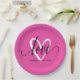 Das Wort Liebe in einem schicken Drehbuch über ein elegantes weißes Herz, diese heißen rosa Teller sind Spaß für Brautparty, Hochzeiten, Geburtstagsparty, Valentinstag oder jeden besondere Anlass.