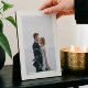 Neu Hochzeitstag Foto-Sake-Plakette, um immer an Ihren besonderen Tag und Ihre Liebe für einander zu erinnern. Diese elegante Hochzeitstag-Foto-Sake-Plakette verfügt über ein einfaches, kleinstes Foto-Layout für große Singles, um Ihr eigenes Foto mit einem dicken weißen Rahmen zu zeigen. Das Weiße Herz und der Pfeil überlagern sich über dem Foto, um mit Ihren Initialen zu personalisieren. Fügen Sie Ihren Nachnamen und festes Datum unter dem Foto der Hochzeit (beachten Sie: die Hintergrundfarbe kann geändert werden, um Anzug Ihre Präferenz.
