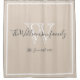 Hochzeitsgeschenk Minimal Familie Monogram Script rustikale Duschvorhang. Personalisierte, weiße, graue Monogramm mit dem Nachnamen und dem Datum der Braut und des Bräutigams, die auf einem reichhaltigen beigen Hintergrund aufgebaut sind. Ein einzigartiges Geschenk für Neuvermählte. Lieblich für ihr neues Leben zusammen. Auch ein schönes Haus wärmendes Geschenk. Klicken Sie auf Diese Vorlage personalisieren, um sie mit dem Anfangsnamen Monogram, dem Familiennamen und dem schnell und einfach festgelegten Datum anzupassen. Der Große Preis für das Frühjahr 2010 ist in diesem Geschäft erhältlich. Der personalisierte Geschenkvorhang ist Teil der Kollektion Neuheilige Geschenke & Hochzeitsgeschenke in diesem Laden, der eine große Auswahl an einzigartigen Geschenkartikeln und eine passende Badmatte anbietet. Weltweit schnell verschickt. Hochzeitsgeschenk Minimal Familie Monogram Script rustikale Duschvorhang. Erstellt durch den Künstler RjFxx *Alle Rechte vorbehalten. #PersonalizedWeddingGift #NewlywedsGeschenk #MonogramShowerVorhang #ZazzleMade