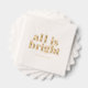 Add a touch of refined holiday elegance with these minimal gold foil “all is bright” cocktail napkins. Featuring a clean, modern serif design and personalized family name option, these napkins bring effortless sophistication to Christmas dinners, holiday parties, winter weddings, New Year’s celebrations, and festive cocktail hours.