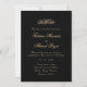 Islamische Moslemische Hochzeitskarte mit solidem schwarzem Hintergrund und einem klassischen, eleganten, auf der Vorderseite geschriebenen Schriftart. Minimal. Modern. Über der Erholung der Information ist arabische Kalligraphie in goldenen Schriften zu sehen. Sie können die Option "Personalisieren" auf der rechten Seite der Seite verwenden, um den Schriftart und die Produktfarbe zu bearbeiten. Name, Datum und Anschrift können von Ihnen personalisiert werden. Ein weißer weißer Umschlag ist im Lieferumfang enthalten. Wählen Sie den Papiertyp aus, den Sie bevorzugen. Ihre Zeile für Design Urheberrecht auf Zazzle.