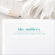 Modernes und kühn gestaltetes Rücksendelabel mit Familienname und Adresse in modernen Aqua-Farben. Koordinieren der minimalen grafischen Holiday-Sammlung